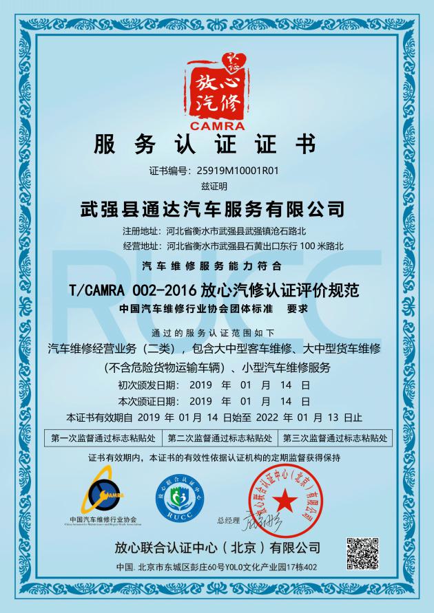 公司秉承“誠信經(jīng)營是通達不變的宗旨,顧客滿意是通達永恒的追求”的服務(wù)宗旨,用“專于技術(shù),樂于服務(wù)”的企業(yè)發(fā)展理念,“打造武強汽車維修服務(wù)第一品牌”的口號。熱忱歡迎社會各界人士蒞臨指導(dǎo),并提出寶貴意見。通達人承諾“4S店的技術(shù),普通修理廠的價格”,我們會以高水準高質(zhì)量高要求為您的愛車保駕護航。