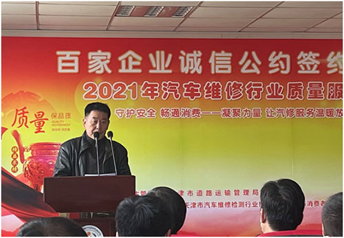 天津市道路運輸管理局副局長楊亮到會并發表講話,號召簽約汽車維修企業做遵章守紀 、誠信經營的表率。