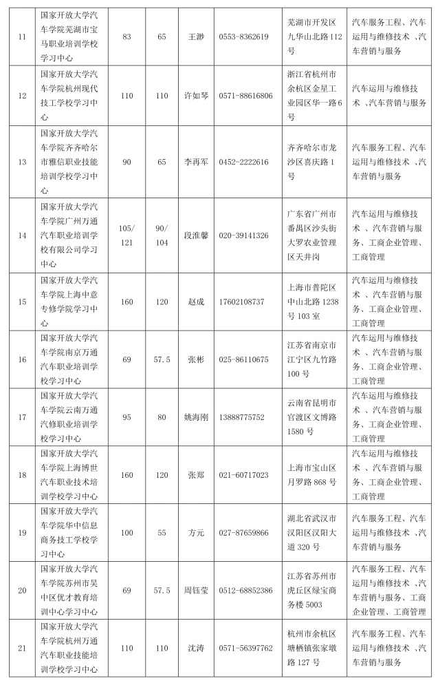 注:工商企業管理、工商管理專業僅限于部分學習中心可招,詳見《汽車學院學習中心報名咨詢信息》表。