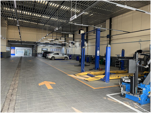 公司地處邵陽市雙清區寶慶工業園高速公路東互通(天嬌國際汽車城),毗鄰高速公路連接線,整個項目占地面積近12畝 總建筑面積8000平方米 ,展廳可同時展示16臺各級豪華車型,近1800平方米的維修車間擁有15個工位,年接待量可達到12000臺次。