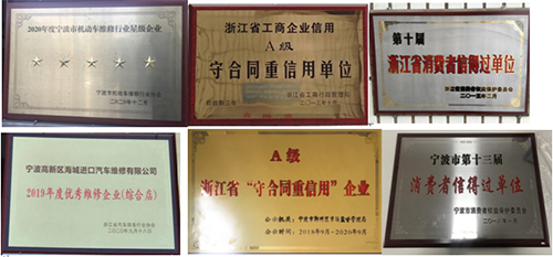 公司自成立以來,曾連續(xù)獲得“A級(jí)浙江省“守合同重信用”企業(yè)、浙江省/寧波市機(jī)動(dòng)車維修行業(yè)服務(wù)質(zhì)量規(guī)范達(dá)標(biāo)單位、優(yōu)秀維修企業(yè)(綜合店)、寧波市/區(qū)誠信企業(yè)、浙江省/寧波市消費(fèi)者信得過單位、寧波市道路運(yùn)輸維修企業(yè)信用考核AAA企業(yè)”等榮譽(yù)稱號(hào)。連續(xù)十年為寧波市市級(jí)行政事業(yè)單位公務(wù)車輛定點(diǎn)維修企業(yè),具有具有豐富的政務(wù)、商務(wù)用車服務(wù)經(jīng)驗(yàn)。大、小修汽車年維修總量在萬余臺(tái)以上,與寧波市內(nèi)和國(guó)內(nèi)多家大型企事業(yè)單位建立車輛服務(wù)業(yè)務(wù)關(guān)系,如:多家國(guó)有專業(yè)銀行、寧波市政府各單位、高新區(qū)管委會(huì)、中國(guó)電信、中國(guó)移動(dòng)、中國(guó)聯(lián)通、寧波市煙草、寧波工程學(xué)院等等。
