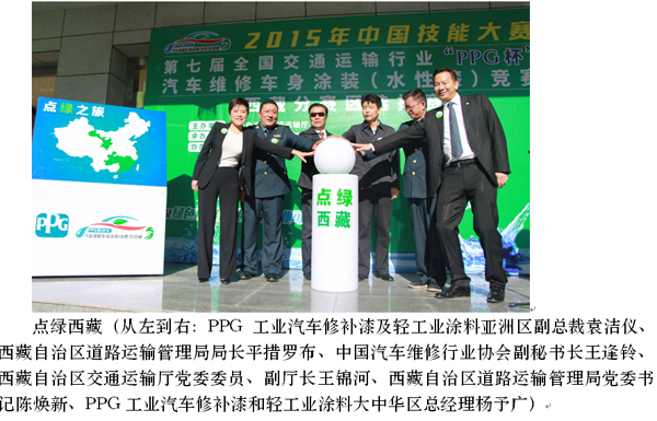 由西藏自治區交通運輸廳主辦,西藏自治區道路運輸管理局承辦,PPG工業龐貝捷漆油貿易(上海)有限公司和拉薩康奧汽車銷售服務有限公司協辦的2015年中國技能大賽—第七屆全國交通運輸行業“PPG杯”汽車維修車身涂裝(水性漆)競賽西藏分賽于7月22~23日在西藏自治區道路運輸管理局與拉薩康奧汽車銷售服務有限公司成功舉辦。這是交通運輸行業首次對車身涂裝的單列競賽并全程使用環保綠色的水性色漆和低VOC高固涂料作為比賽用漆的國家一類賽事,更是首次在雪域高原西藏設立分賽場的國家級賽事,也是西藏首屆汽車維修行業職業技能競賽。