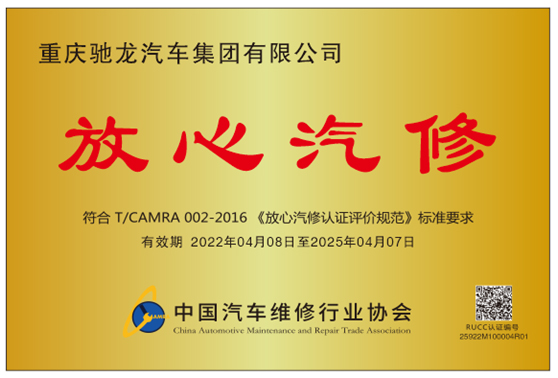 放心汽修認證證書