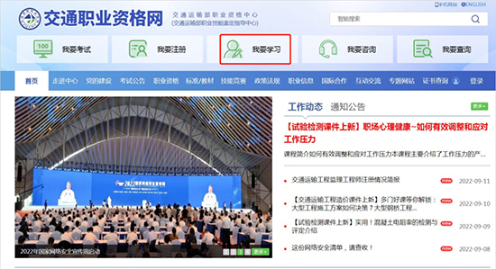 登錄“交通職業(yè)資格網(wǎng)”(https://www.jtzyzg.org.cn)首頁,點(diǎn)擊“我要學(xué)習(xí)”欄,進(jìn)入“機(jī)動(dòng)車檢測維修專業(yè)技術(shù)人員繼續(xù)教育課程”界面,選擇所學(xué)課程。