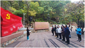 大家站在平谷第一個黨支部誕生地桃棚村紅崖洞的宣誓廣場,認真聆聽講解員講述平谷第一個黨支部誕生始末和抗日英烈故事,實地參觀了第一個黨支部誕生的紅崖洞,在宣誓廣場,由組織委員劉麗帶領大家面向鮮艷的黨旗,舉起右拳莊嚴宣誓,重溫入黨誓詞,再次激發大家的入黨初衷,深化黨性修養。
