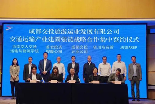 為聚焦產業建圈強鏈和智慧蓉城建設,加快建設現代化交通運輸產業體系,4月11日上午,在成都交投旅游運業發展有限公司交通運輸產業建圈強鏈戰略合作集中簽約儀式上,成都交投運業攜手蜀道物流、西南交大等12家企業、高校、銀行,共同推進建設現代化交通運輸產業發展。