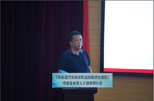 貴州交通技師學院陳文均院長做《對標“標準”為新能源汽車維修行業培養更多高素質技術技能人才》主旨發言