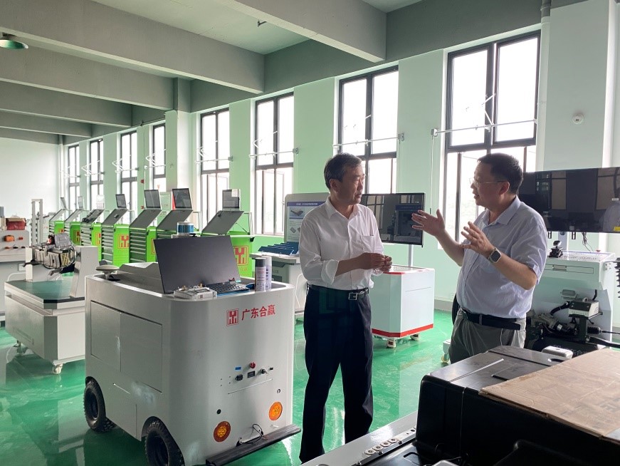 4月17日開班儀式結束后,張延華會長、教培工委佘鏡懷秘書長等一行到廣東合贏教育科技股份有限公司走訪調研,總經理馮津和相關負責人一同接待并座談交流。張延華會長對廣東合贏一直來為汽車維修及汽車職業教育領域的創新和發展取得的成就給予高度的評價。