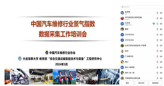 2024年5月15日,我會組織的汽車維修行業景氣指數數據采集工作培訓會議以線上方式順利召開。來自全國各地的行業協會代表、汽修企業代表及行業專家100余人參會。