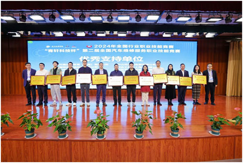 張延華致閉幕辭。他總結回顧了本屆競賽的組織情況并指出,競賽成功舉辦離不開各級管理部門、地方行業協會、行業企業、職業院校以及媒體單位的大力支持,離不開廣大職工、師生、專家裁判的積極參與和辛勤付出,謹向各方面表示誠摯的謝意和崇高的敬意。他強調,希望全體選手要把競賽當作新的起點,乘大賽東風,腳踏實地,不懈努力,用勤勞和智慧創造美好生活,用技能點亮精彩人生,為國家、社會和行業發展做出新的更大貢獻。他表示,大賽深入貫徹“賽展會”結合的辦賽要求,競賽期間同步舉辦了汽車維修業綠色發展論壇、全國汽車維修行業協會秘書長聯席會、團體標準宣貫會、汽車鈑金涂裝設備展等活動,是推動產教融合的一次具體實踐。協會將以此為契機,深化與職業院校、行業企業的合作,持續推動產教融合、協同發展,不斷拓展新時代汽車后市場技能人才培養領域,為促進行業高質量發展、推進維修業高技能人才隊伍建設貢獻力量。