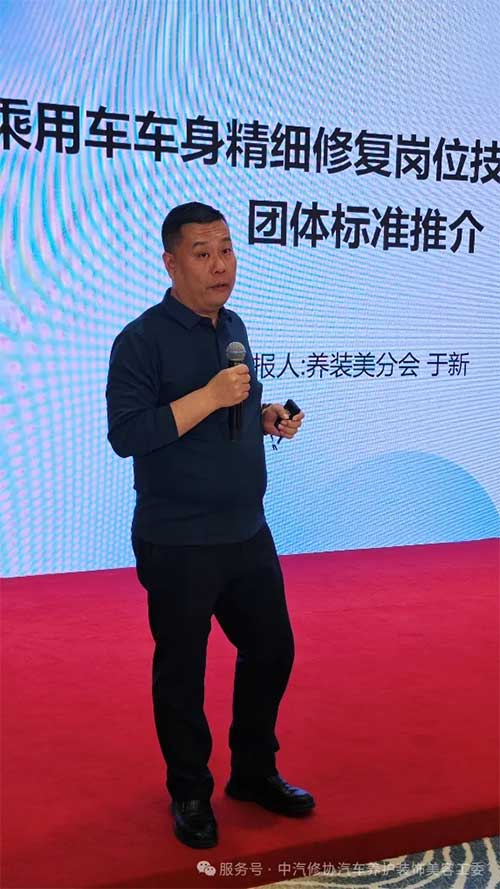 本次會議取得了一系列核心成果。養(yǎng)裝美分會秘書長于新推介了歷時半年編制的《乘用車車身精細(xì)修復(fù)崗位技能評定規(guī)范》團體標(biāo)準(zhǔn)。該標(biāo)準(zhǔn)明確了車身修復(fù)從業(yè)者技能等級評定體系,填補行業(yè)人才評價空白,為服務(wù)標(biāo)準(zhǔn)化、專業(yè)化提供權(quán)威依據(jù)。會議還為天津中美漢大科技有限公司、喜多邦環(huán)保設(shè)備(安徽)有限公司、中馳車之谷互聯(lián)科技青島有限公司、山東柏謙國際供應(yīng)鏈管理有限公司、普蘭店區(qū)朱師傅汽車服務(wù)中心等 10 家單位授予新會員牌,進一步擴大行業(yè)協(xié)作網(wǎng)絡(luò),促進資源整合與經(jīng)驗共享。