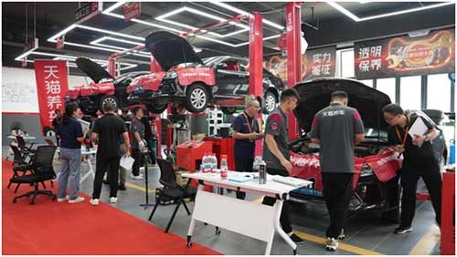 本次大賽以“以賽促學、以賽促練”為核心,通過“理論+實操”雙軌考核,全面推動團體標準的落地應用。自7月啟動以來,天貓養車連鎖體系全國范圍內超千家維修企業參與線上培訓與選拔,最終40位優秀技師晉級總決賽。決賽現場,選手們嚴格按照團體標準要求,完成自動變速器換油保養全流程操作,展現出高超的技術水平和規范的作業素養。