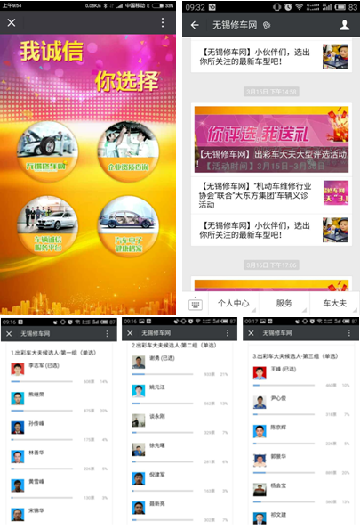 微信“您評選,我送禮——出彩車大夫等你來!”、“最熱門新車”評選活動也舉辦得如火如荼,吸引了許多市民踴躍掃描關注“無錫修車網”官方微信,參加投票活動,引來陣陣熱潮,由此進一步將網站推向民眾增加網站點閱度。