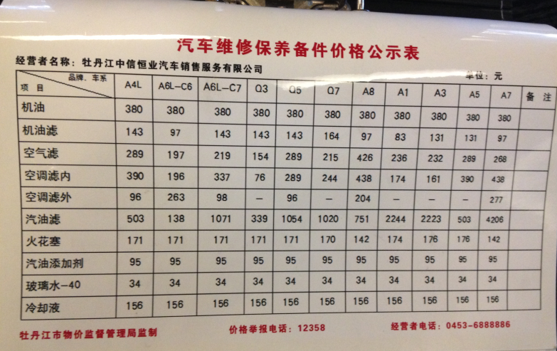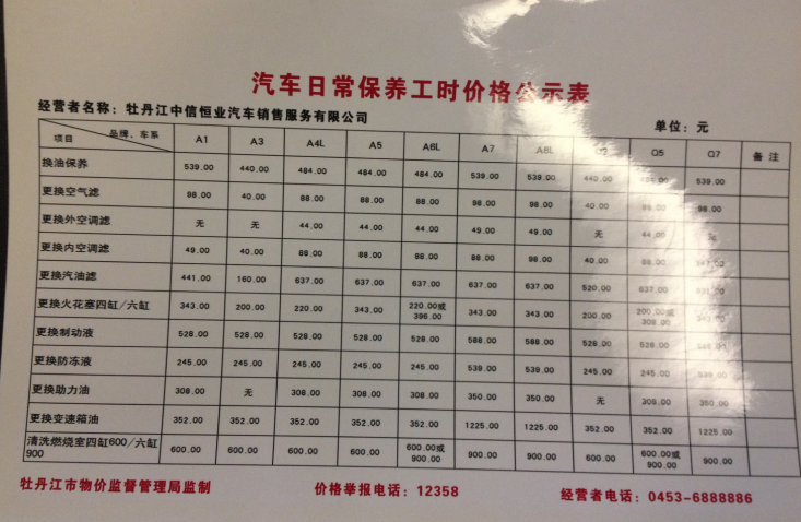 三、常用工時備件價格公示。執(zhí)行價格透明,價格公示的政策,維修工作開始前與客戶確認維修項目和預(yù)估金額,維修工作結(jié)束后,再次與客戶解釋已完成的維修項目和維修金額,讓客戶明明白白消費,高高興興消費。