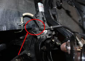 圖5 2009款君越轎車前車身垂直加速度傳感器安裝位置