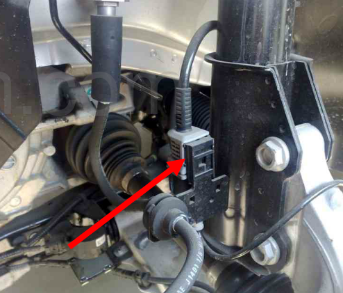 圖7 2009款君越轎車車輪垂直加速度傳感器安裝位置