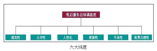 中國汽車售后服務客戶滿意度卡思調查(CAACS)主要從以下六大緯度來評價汽車品牌4S店的售后服務