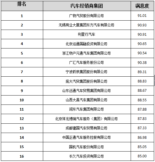 附:2017年度中國汽車售后服務客戶滿意度排名