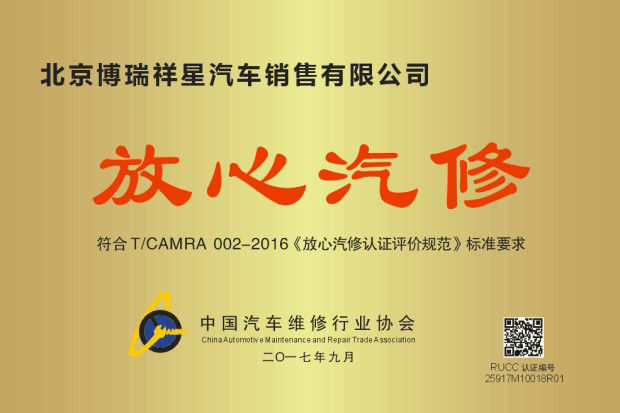 放心汽修認證證書