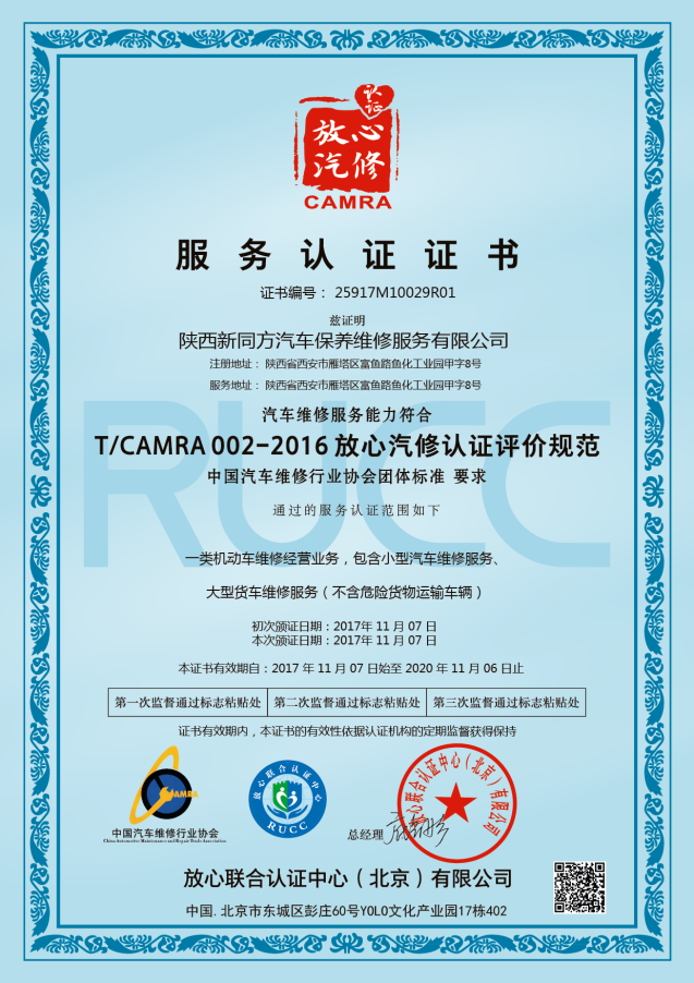 陜西新同方是陜西誠信聯(lián)盟會員單位、政府采購定點(diǎn)維修單位、交通事故快速理賠中心、多家保險公司服務(wù)合作及定點(diǎn)維修企業(yè)、市交通運(yùn)輸局指定的機(jī)動車排氣超標(biāo)治理維護(hù)站(M站)。