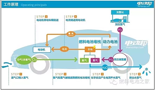 當(dāng)車輛有更大的動(dòng)力需求的時(shí)候,鎳氫電池組很快就會(huì)耗光,所以這時(shí)候燃料電池堆棧就直接向電動(dòng)機(jī)輸電,跟鎳氫電池組實(shí)現(xiàn)雙重供電來(lái)滿足需求;當(dāng)車輛減速行駛的時(shí)候,電動(dòng)機(jī)轉(zhuǎn)化為發(fā)電機(jī)來(lái)回收動(dòng)能,電量直接輸送到鎳氫電池組內(nèi)儲(chǔ)存起來(lái)。